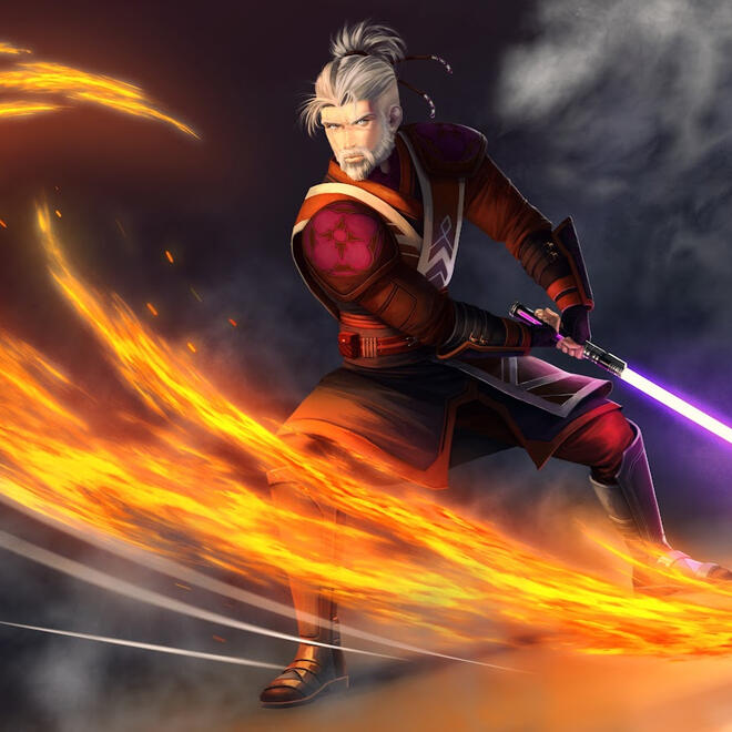 In the fourth year as a Padawan, his master sought and was granted permission from the Enclave council to begin his Knight Trials. The first two occurred on his home Planet of Eshan. Perhaps unorthodox, as with the rest of his training, his Master preferred life experience to instruct and guide. So it was when his skill and insight were put to the test. It was also the year that saw the false peace of the Cold War come to an end as the galaxy once more was plunged into all out war. His first major battle took place on the Planet of Balmorra. It was there he endured two of his trials. Trials of Courage and Flesh were met and overcome. Only his trial of Spirit remained. On the calm of Tython, the Darkness within him was faced and denied.Trials of KnighthoodTrials of Skill & InsightIn the opening months of 11 ATC rumors began to appear of unrest on Eshan. Whispers of assassinations and a brewing civil war prompted the need for investiagation. From their enclave, Coriic and his Master were to be sent to assist. Neither had set foot on the home planet of the Echani since that fateful day five years prior when it had been Kay’arn who had escorted him to Tython. The Padawan had misgivings concerning his return and what his involvement might mean. It was then that Coriic told only a second person about his indiscriminate actions in the days before he left the planet. Of the rest, and reasons for wanting to become a Jedi over the path placed before him on Eshan, his master had long known. So to face the tests of doubt and to discern truth from rumor, they departed.Upon arrival they learned that indeed acts had occurred that had two houses on the verge of war with one another. Each with several houses willing to back them. However, the ruling council of Eshan seemed content to let the pieces fall where they may. Given, this was in their opinion nothing more than a squabble of minor houses for minor political gain. Indeed, in the grand scheme of things, it appeared to be little else. That is when Coriic’s insight and knowledge having grown up in a noble house gave the Jedi need to reanalyze. The main houses in question, were house Faye-Wen and house Cir-Waer. The former, a staunch supporter of the Republic for generations, and the latter a vocal advocate for the Empire. This information certainly warranted a probe into things behind the scenes and a whole new line of questioning. When queries were made, only one of the houses agreed to send representatives to speak with the Jedi. As one who would know something of the culture and history of the noble houses, Coriic was requested to be in attendance. However, due to a shift in scheduling, when Coriic entered the chamber, the meeting had already begun. His entrance had far more impact than anticipated. For he froze not two steps from the through door. There, like a hauntingly real dream, stood Raala. He had known he might see her, or deal with a family member who would know him. However, he had not expected it would be so soon. Nor, that it would be in a way such as this. With her holding such a prominent role in the Jedi investigation. His pondering and panic was cut short. For the moment she and her fellows saw him, they grew hostile. Their rage and indignation evident. Stances shifted from relaxed to aggressive. Grips on weapons tightened.“What insult is this?” She demanded. “Jedi, do you claim this man?” The air in the chamber was cold, hostile, and confused. The Jedi Ambassador, a Master named Requilar. Held up a steadying hand.“Who is this man to you, Captain Fay-Wen?” Her eyes held Coriic’s with such vehemence even he was even further taken aback.“He is a dissident. Faithless and honourless, and now killer of my family. I am bound by oath to capture or kill him.” Her claims and demands hung there in the air around them. Mines waiting to be set off by the growing tension. Disarming them proved difficult. However, with much wisdom, it was discovered why her claims had been made. In her story, shortly after the disputes and maneuvering between her house and that of Cir-Waer, patrols and supply chains were being disrupted. Often, all were found killed. In the following weeks, these attacks grew more frequent and had recently become small skirmishes between the houses. In one such skirmish just a day prior, she had faced and fought the commander of her enemy's forces. She had dislodged his helmet, and who else had stood before her, but her ex fiance Coriic Qel-Dorren. He had mocked her before retreating. Now, here he stood again. His very presence continued to mock her and those of her family whose blood was on his hands. No explanation from the Jedi, no accounting of Coriic’s whereabouts over the last two days would dissuade her. She would only be satisfied with a duel and justice as decided by her hand. Trial by Combat. As was in accordance with the Laws of her people. Long deliberations were held by the Jedi among themselves. It was a challenge he could not refuse without consequences. For they were on Eshan, and as Jedi had to respect the culture and customs of its people. The law was with her, and the Jedi were beholden to the Law of the planet. So, the strategic gamble was made to allow the fight in hope he won.The traditionalist she was, all ritual was to be followed. Sunset came and all was prepared. As the challenged he could set the terms of combat, she as challenger could set the stakes. In respect and bowing to cultural expectation, he chose unarmed combat. Plain and pure. In his final preparations he confessed his concern of what loss would mean. The ramifications of her having his life in his hands. His master simply smirked, tapped him on the shoulder, and encouraged: "Then don't lose."The duel was fierce from the onset. The determination and conviction in every movement radiated from his opponent. His master would later recount to him how obvious it was to even him. Coriic had been her better when he had left